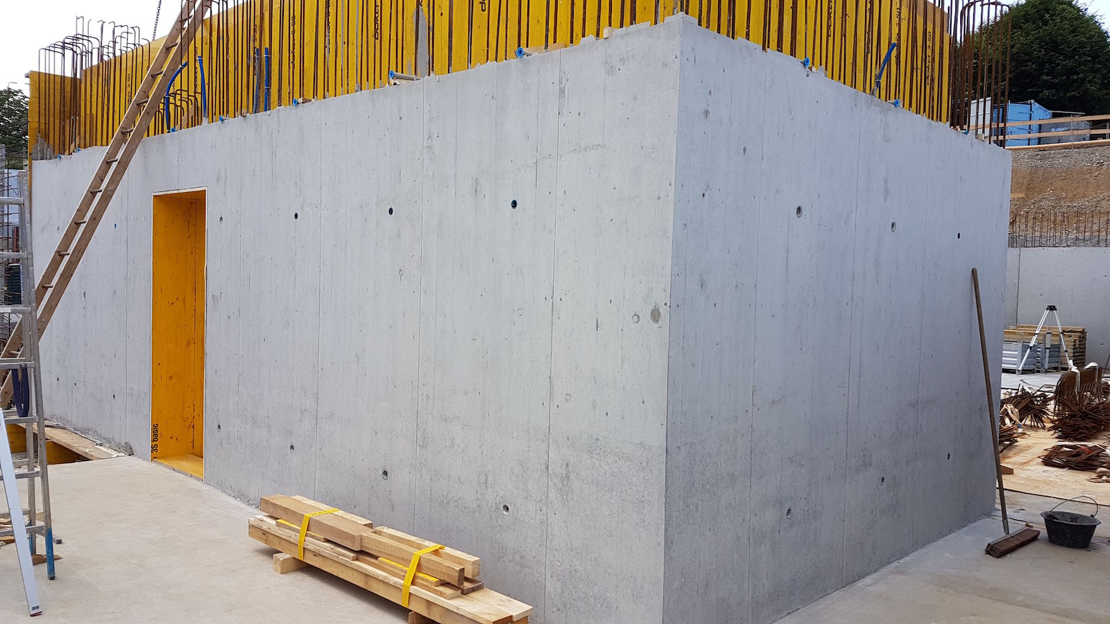 Neubau mit 2 Untergeschossen, im Erdgeschoss mit einer Werkhalle (Raumhöhe von 5.55 m) und im Obergeschoss mit Büroflächen.
