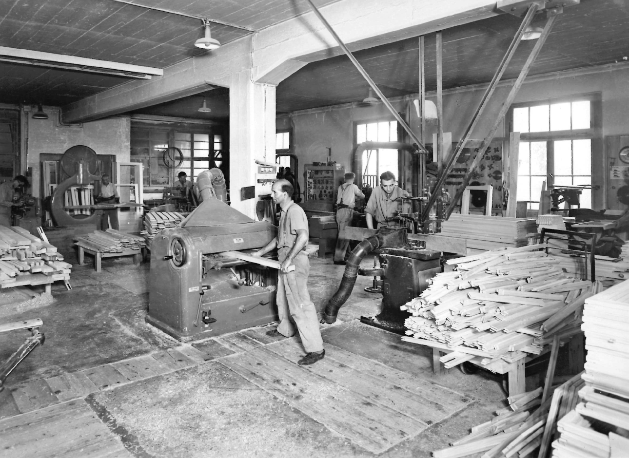 Mit der Erweiterung um eine eigene Schreinerei und dem Neubau von Büro, Werkhof und Werkstatt an der Feerstrasse im Jahr 1927 entwickelte sich das Unternehmen kontinuierlich weiter – stets im Spannungsfeld zwischen handwerklicher Tradition und technischem Fortschritt.